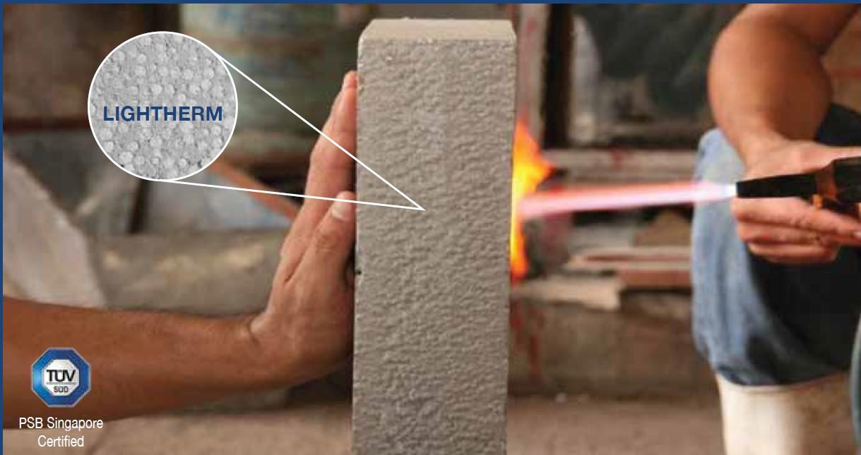 LIGHTHERM insulation system achieves complete thermal insulation of the building, combined with absolute water tightness and high strength skim coat. It is designed for plastering or spraying on cementitious substrate such as brick walls, block walls, soffit slabs, AAC/ALC panels etc… It is suitable for internal and external application. It comes in prepacked bags for ease of use and quality control.